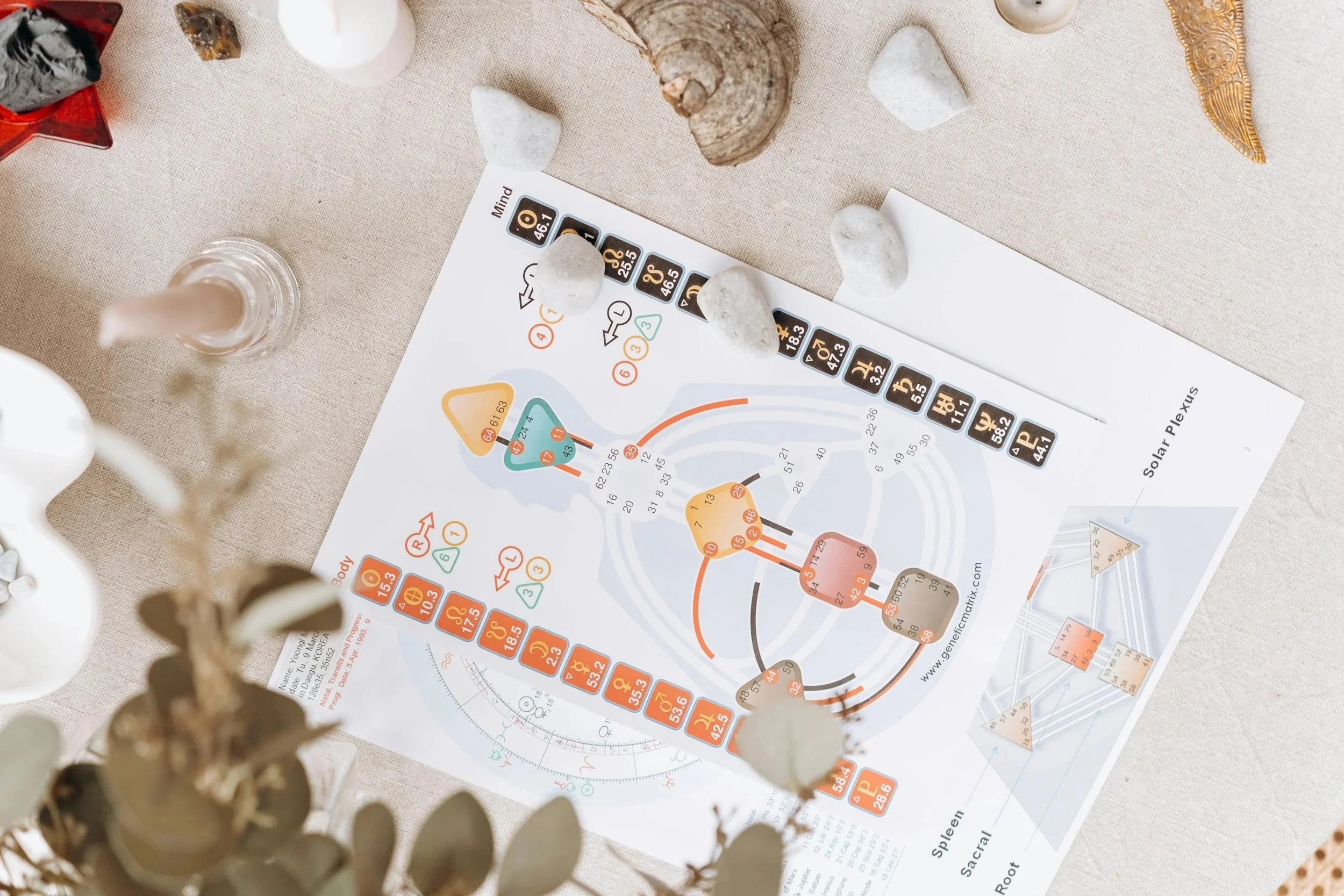 Your chart (called a BodyGraph) is created using your birth date, time, and location. It reveals your energy type, strategy, authority, and more — essentially, your energetic fingerprint.